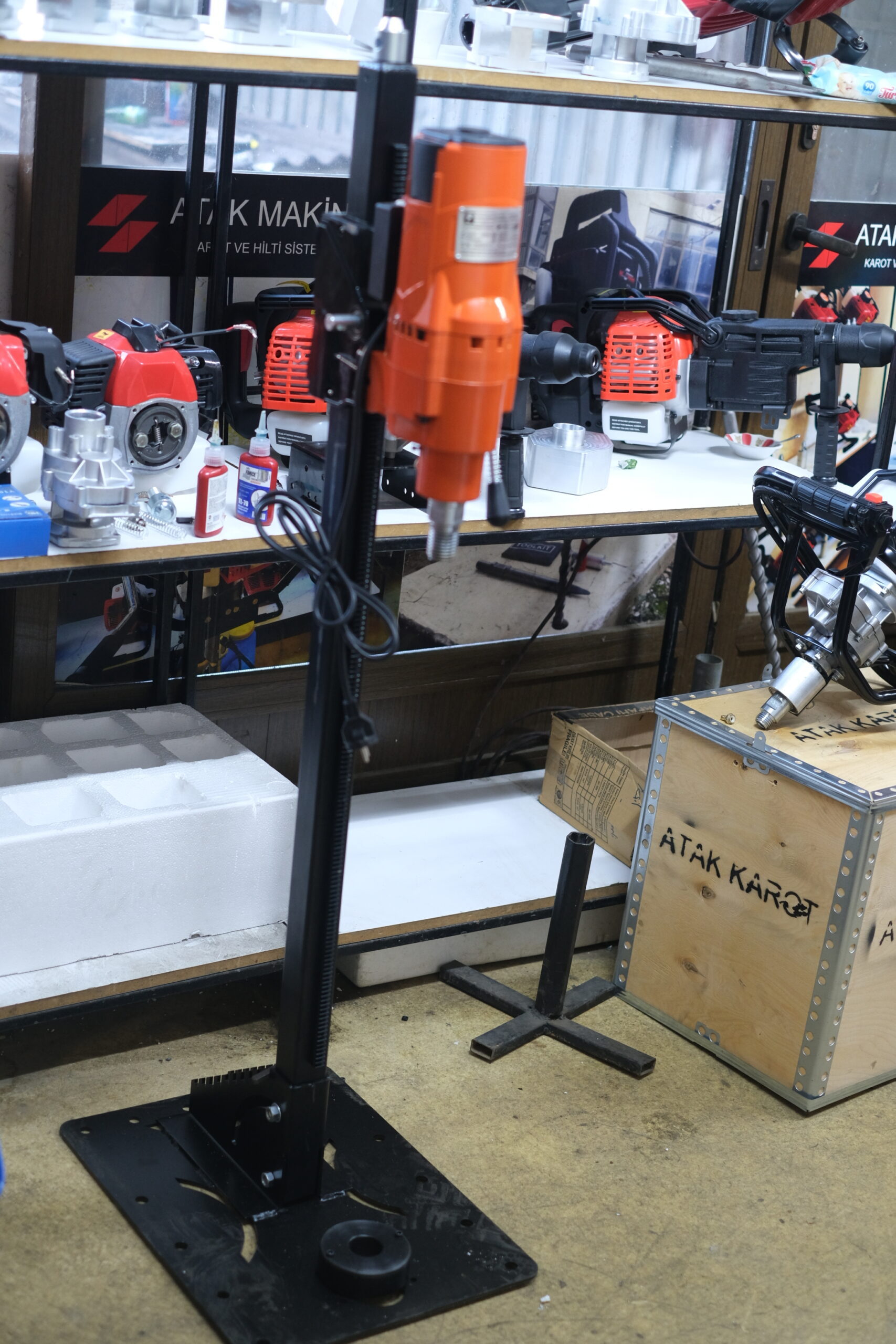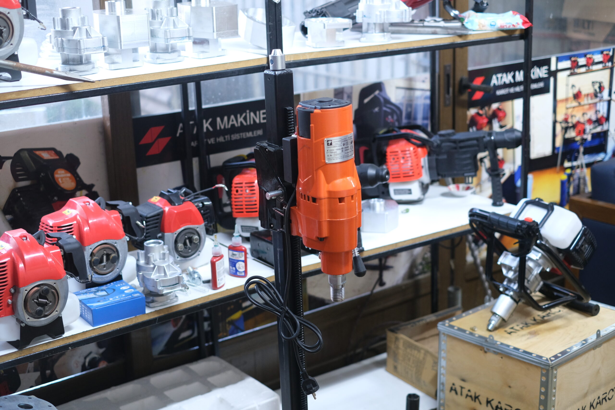 ELEKTRİKLİ MOTOR 5 METRE SONDAJ BORUSU (5 SANİYEDE SÖK-TAK KIRILMAYA ÇATLAMAYA KARŞI GARANTİLİ) 16 LT SU POMPASI ŞARZLI (SAHADA 11 SAAT ŞARZI DAYANIR SERT ZEMİNLER İÇİN ELMAS UÇ VE BORUSU (GRANİT,ANDAZİT,BAZALT GİBİ) KARIŞIK ZEMİNLER İÇİN ELMAS UÇ (TOPRAK,KİL,KİST KAYA,KUM KAYA,KİREÇ KAYA GİBİ) YILAN KAMERA 10 METRE BORU KURTARMA APARATI BORU SABİTLEME APARATI NUMUNE ALMA APARATI BORU TAŞIMA ÇANTASI BORU AÇ-KAPA ANAHTARI TAMİR TAKIM ANAHTARI MAKİNEMİZ HER ZEMİNDE DELME GARANTİSİNDEDİR